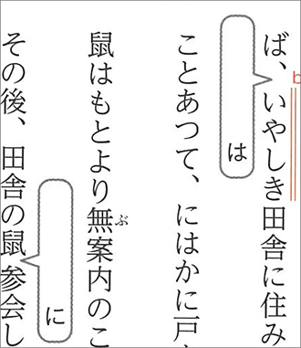 3.本文の横に省略された語を補う吹き出しを設けています。