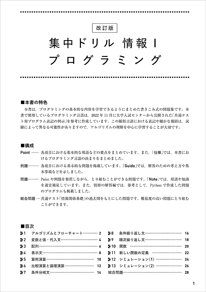 改訂版 集中ドリル 情報Ⅰ プログラミング 目次