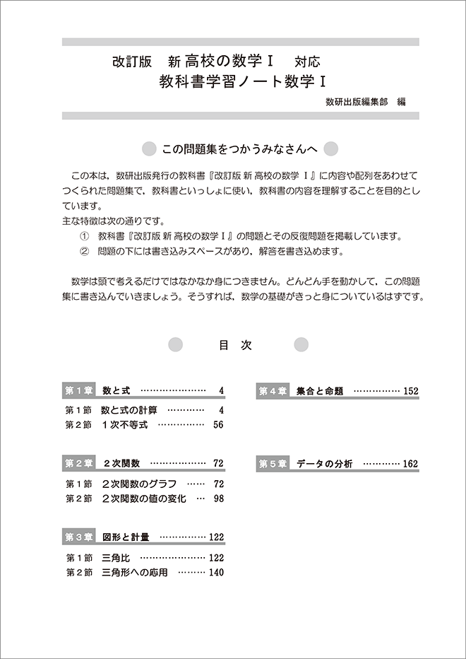 改訂版 新高校の数学I 対応 教科書学習ノート 数学I 目次