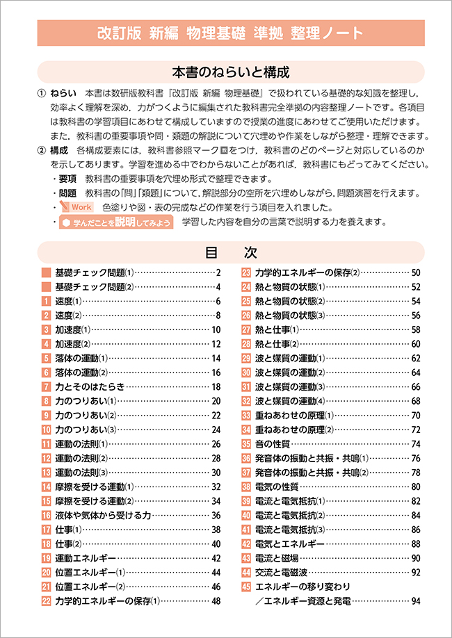 改訂版 新編 物理基礎 準拠 整理ノート 目次
