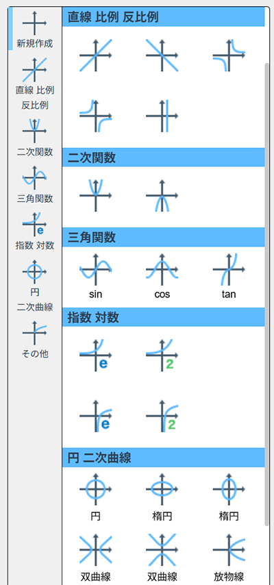 また、よく使われるグラフは、画面左のメニューからワンタッチで挿入できます。