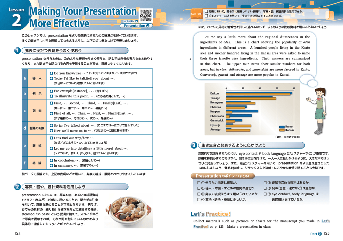 PART 2, Express It Logicallyでは,図表の内容の伝達など,多様な形式の表現活動を行います。