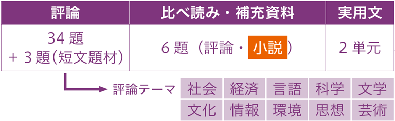 短文で学習ポイントを確認できる文章や比較読解用の文章のほか、補充資料として小説も収録しています。