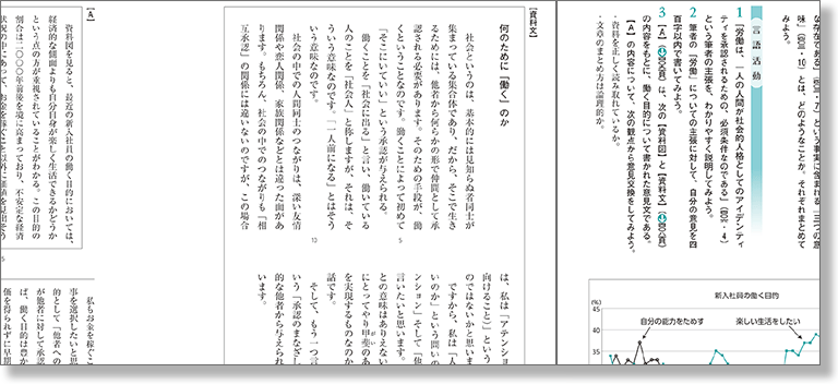 さまざまな角度から理解を深める言語活動課題を多数用意。図表資料の分析を含む課題も設定しています。