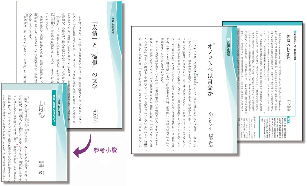 評論題材の参考資料や言語活動の素材として小説も収録。