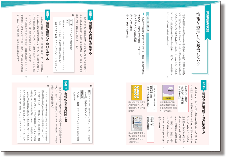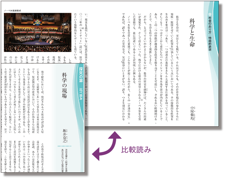 実用文単元や「探究の扉」で比較読解の学習に取り組めるようにしています。