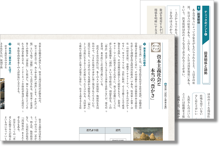 「ズームアップ」では評論テーマを、「チェックポイント」では読解・表現スキルを解説。比較読解用の文章も充実しています。