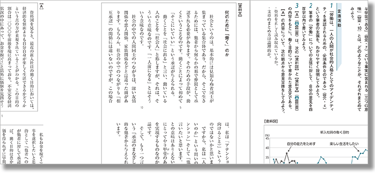 さまざまな角度から理解を深める言語活動課題を多数用意。図表資料の分析を含む課題も設定しています。