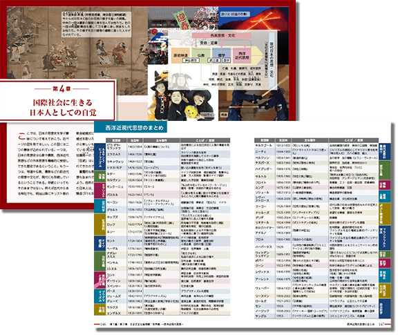 国際社会に生きる現代の日本人に受け継がれてきた伝統や文化,また,代表的な日本の先哲の思想を学習することにより,現代日本の思想・文化がさまざまな外来思想を受容しながら形成されてきたことに気付き,他国や異文化を尊重する態度が身につきます。