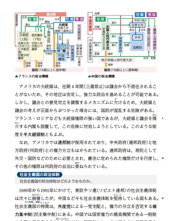 各項目の学習内容に関連する話題を取り上げ,政治・経済に関するさまざまな問題を考察することで,考える力を養えます。