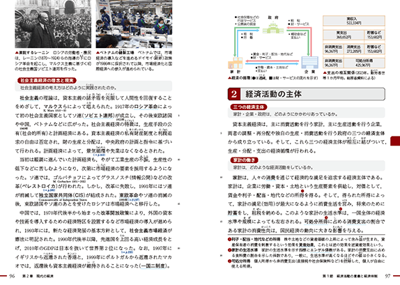 本文などを16ページ増とし,丁寧な記述と情報量の充実を両立。「公共」の教科書にはあまり掲載されていない用語や,掲載されていても太字になっていないことが多い用語を青下線で明確化。