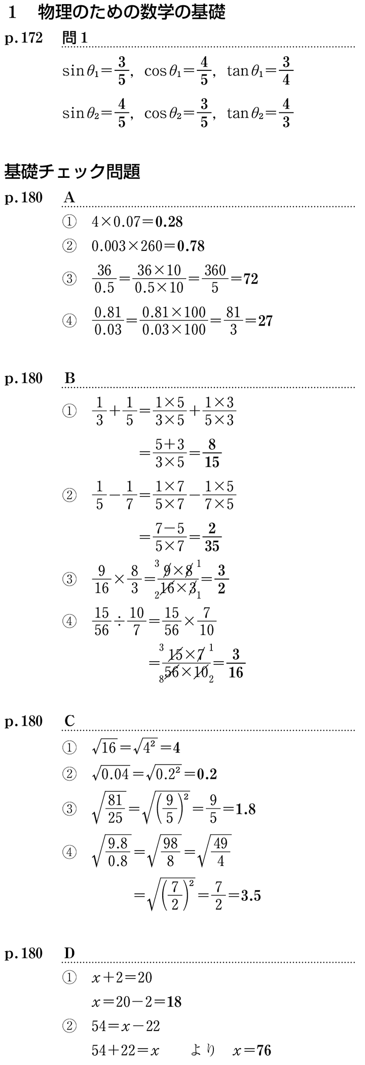 物理のための数学の基礎・基礎チェック問題